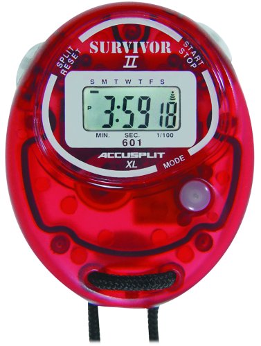 | 18 of 19 people found the following review helpful By Kickline Designer (Somerville, MA) - See all my reviews Amazon Verified Purchase These are good, trusty stopwatches at a good price. The color makes them easily identifiable at meets and in bags - we bought all four colors and black - that way we can have three of the same color at each lane for our meets. It makes it easier to confirm they are all returned. They are easy to operate and a good choice for occasional users who are timing races. We are very happy with them and will order more for our new season. 22 of 26 people found the following review helpful By 4 of 4 people found the following review helpful By Amazon Verified Purchase This review is from: ACCUSPLIT Survivor II - S2XL Stopwatch, Cum Split, Clock (Sports) I use a stopwatch a lot to time my exercise. This is the best stopwatch I've ever owned in this price range. It's sturdily made in a color I love, deep red (the company that makes it offers a great selection of colors). The design itself is quite attractive, with a pleasant oval shape, large numbers which are easy to read, and a good grade of plastic. Best of all, the action of the function keys is very smooth. The keys on the last few stopwatches I owned had a rough action, and for the most recent one, that's what caused it to die. The left, top function key got stuck and couldn't be unjammed.One downside--which seems to be consistent across all stopwatches I've owned--is that the instructions are hard to read. They are in small type, confusing and incomplete. However, my husband and I together were able to figure out something I never could with my last stopwatch, how to turn off the hourly chime. That drove me crazy with the other one because the clock on it ran fast so... Read more |