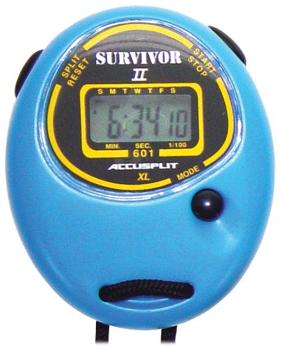 | 18 of 19 people found the following review helpful By Kickline Designer (Somerville, MA) - See all my reviews Amazon Verified Purchase These are good, trusty stopwatches at a good price. The color makes them easily identifiable at meets and in bags - we bought all four colors and black - that way we can have three of the same color at each lane for our meets. It makes it easier to confirm they are all returned. They are easy to operate and a good choice for occasional users who are timing races. We are very happy with them and will order more for our new season. 22 of 26 people found the following review helpful By Amazon Verified Purchase My son lost the stop watch handed out by his teacher to all her students so I bought him a new one as well as one for the teacher. This stop watch was very cheap in price yet great in functions. Easy to use for a child as well as an adult. 4 of 4 people found the following review helpful By Amazon Verified Purchase This review is from: ACCUSPLIT Survivor II - S2XL Stopwatch, Cum Split, Clock (Sports) I use a stopwatch a lot to time my exercise. This is the best stopwatch I've ever owned in this price range. It's sturdily made in a color I love, deep red (the company that makes it offers a great selection of colors). The design itself is quite attractive, with a pleasant oval shape, large numbers which are easy to read, and a good grade of plastic. Best of all, the action of the function keys is very smooth. The keys on the last few stopwatches I owned had a rough action, and for the most recent one, that's what caused it to die. The left, top function key got stuck and couldn't be unjammed.One downside--which seems to be consistent across all stopwatches I've owned--is that the instructions are hard to read. They are in small type, confusing and incomplete. However, my husband and I together were able to figure out something I never could with my last stopwatch, how to turn off the hourly chime. That drove me crazy with the other one because the clock on it ran fast so... Read more |
